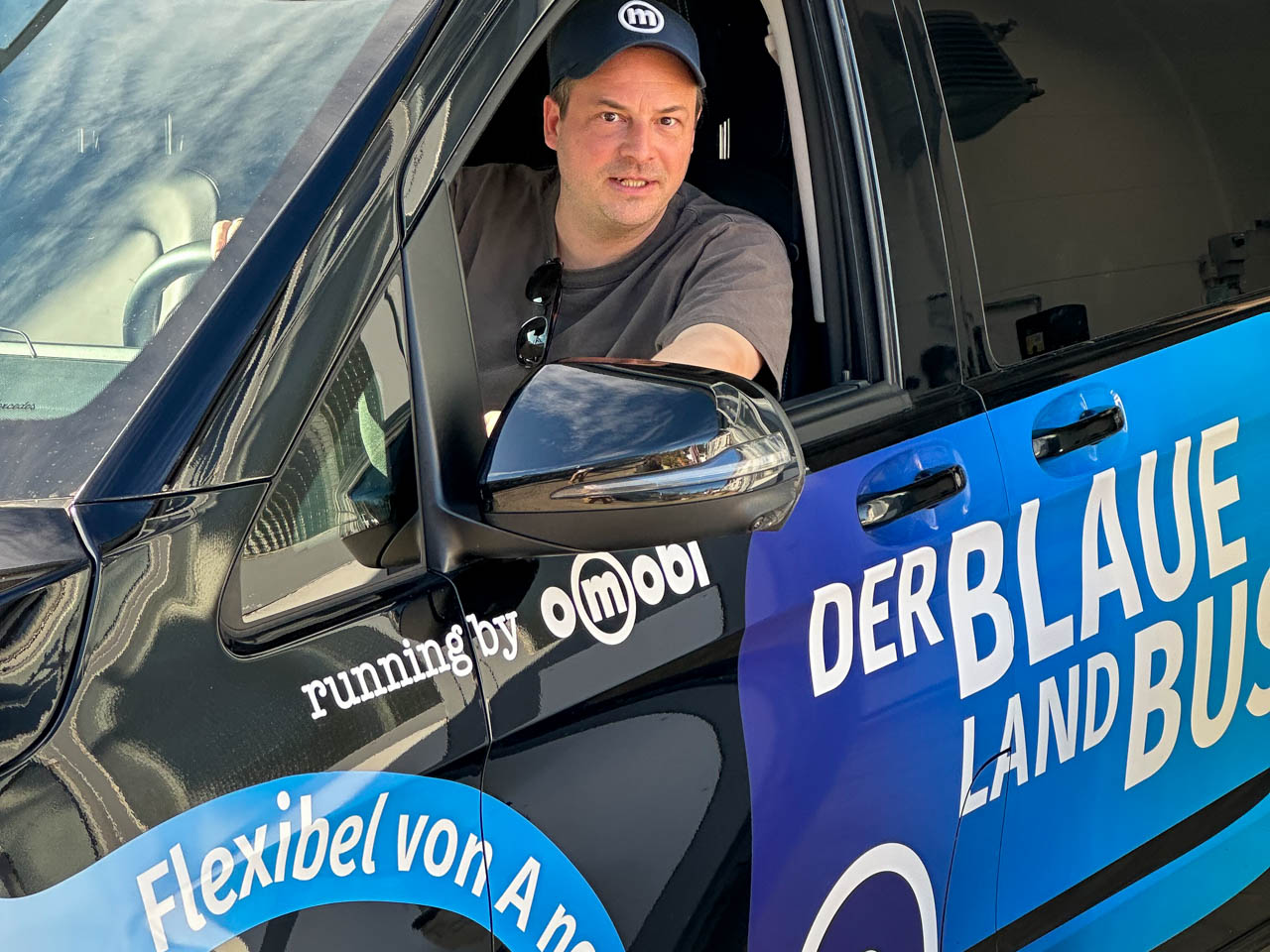 Ich treffe Clemens Deyerling, einen der Gründer von omobi, vor der Firmenzentrale in Neuegling am Riegsee. Das Unternehmen ist heute ein innovativer Anbieter für Mobilitätslösungen im ländlichen Raum. omobi betreibt unter anderem On-Demand-Systeme wie den „Blauen Land Bus“.