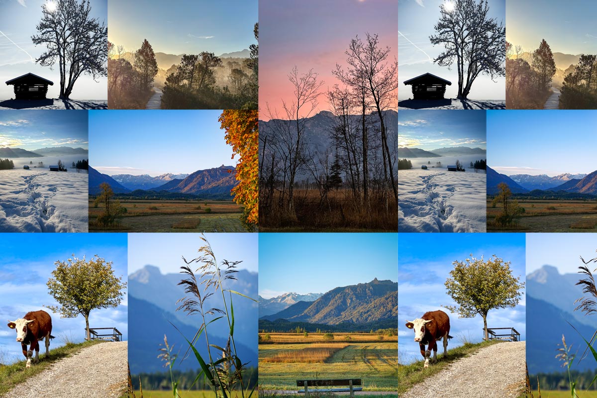Jedes Jahr im Dezember durchsehe ich die große Anzahl an Fotos, die im jeweiligen Jahr im Blauen Land entstanden sind. Dabei treffe ich eine persönliche Auswahl von Aufnahmen, die mich so sehr ansprechen, dass ich sie in limitierter Auflage als Postkarten drucken lasse. Die diesjährige Auswahl zeigt die wunderschöne Landschaft rund um Murnau am Staffelsee, in der wir leben.
